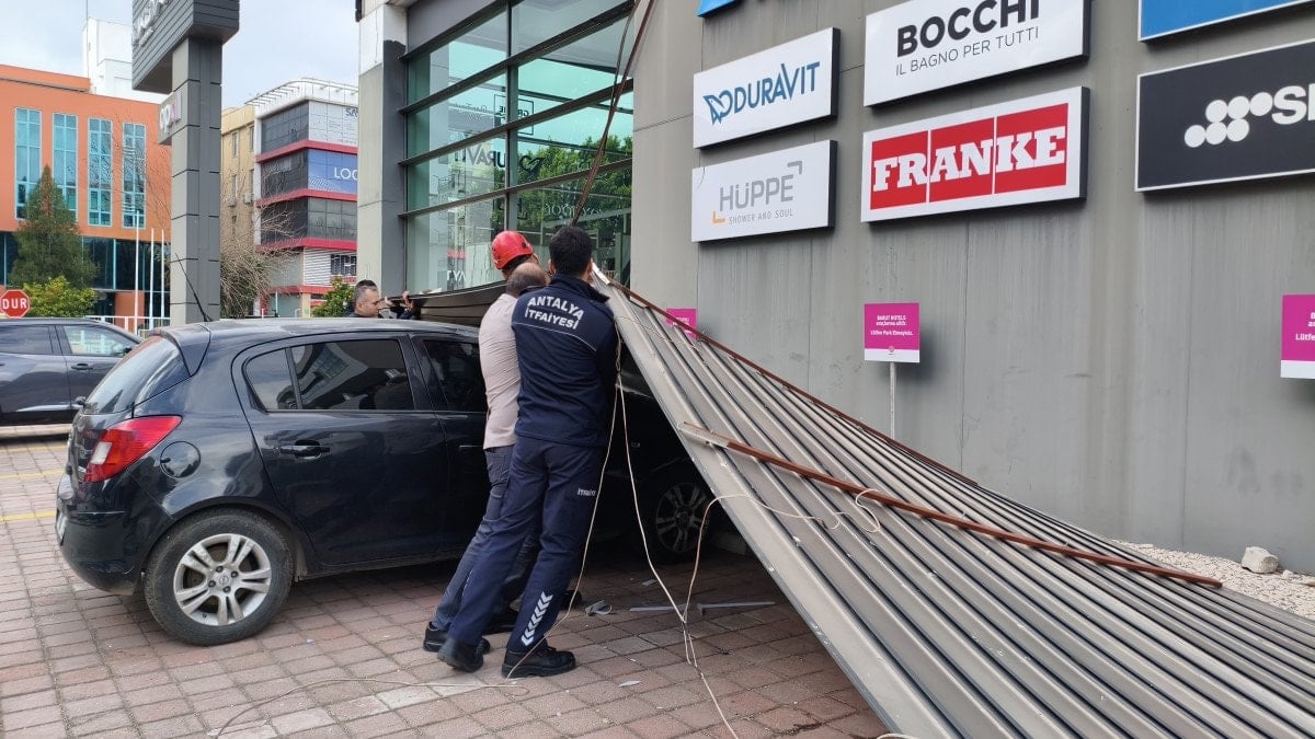 Termessos Bulvarı’nda ise bir iş yerine ait reklam tabelası, park halindeki 34 VGK 35 plakalı otomobilin üzerine devrildi. Olayda araçta maddi hasar oluşurken tabela, itfaiye ve polis ekiplerince kaldırıldı.