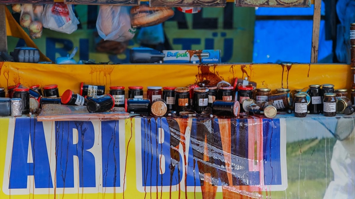 Yaşanan olayda bazı araçların camları kırıldı, tezgahtaki ürünler zarar gördü.