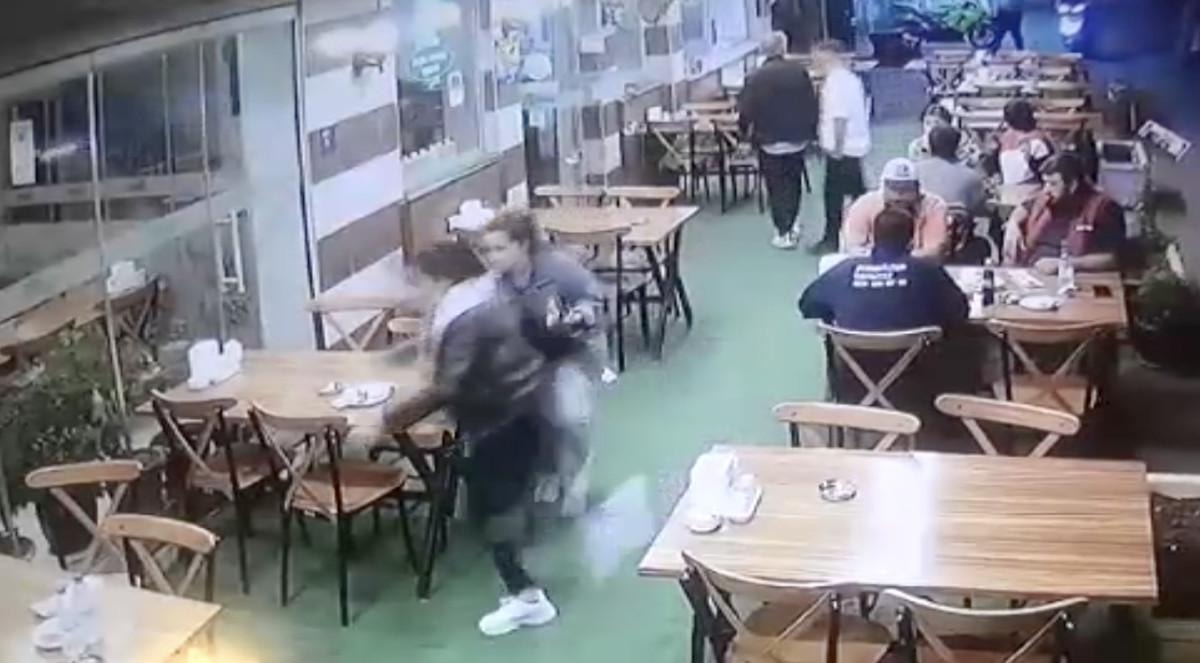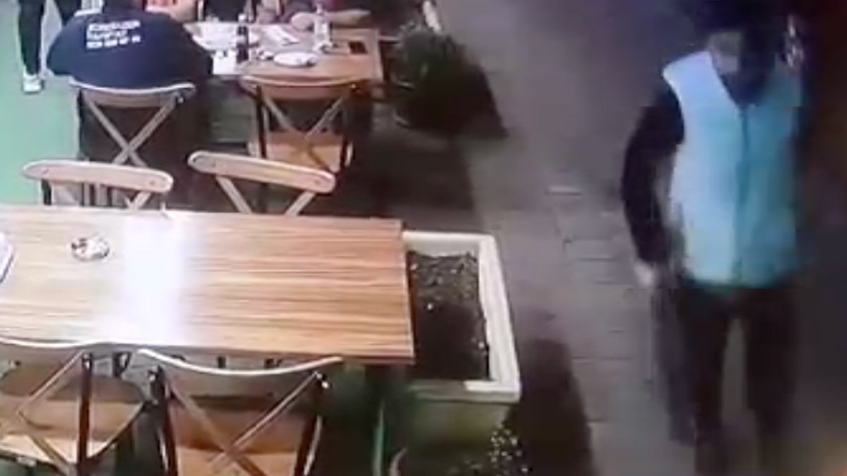 Görüntüde, olayın ardından saldırganın koşarak lokantanın önünden geçtiği ve yemek yiyenlerin yaşadığı panik yer aldı.