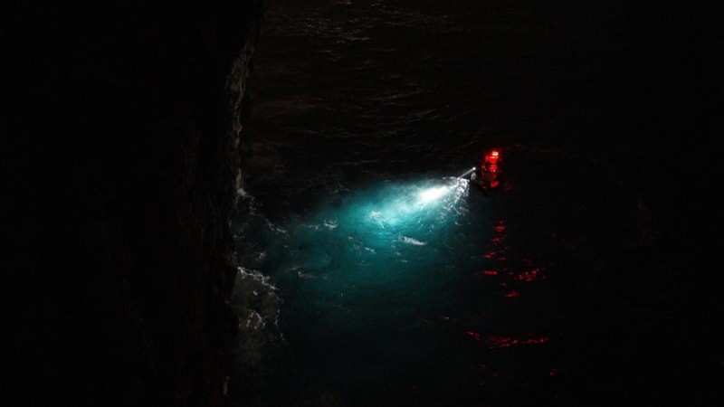 Deniz Limanı Şube Müdürlüğüne Bağlı Gemi Adamları ekipleri, hava koşullarından dolayı mağaraya botla giremese de, bir kurbağa adam dev dalgalar olmasına karşın yüzerek mağaraya ulaştı.