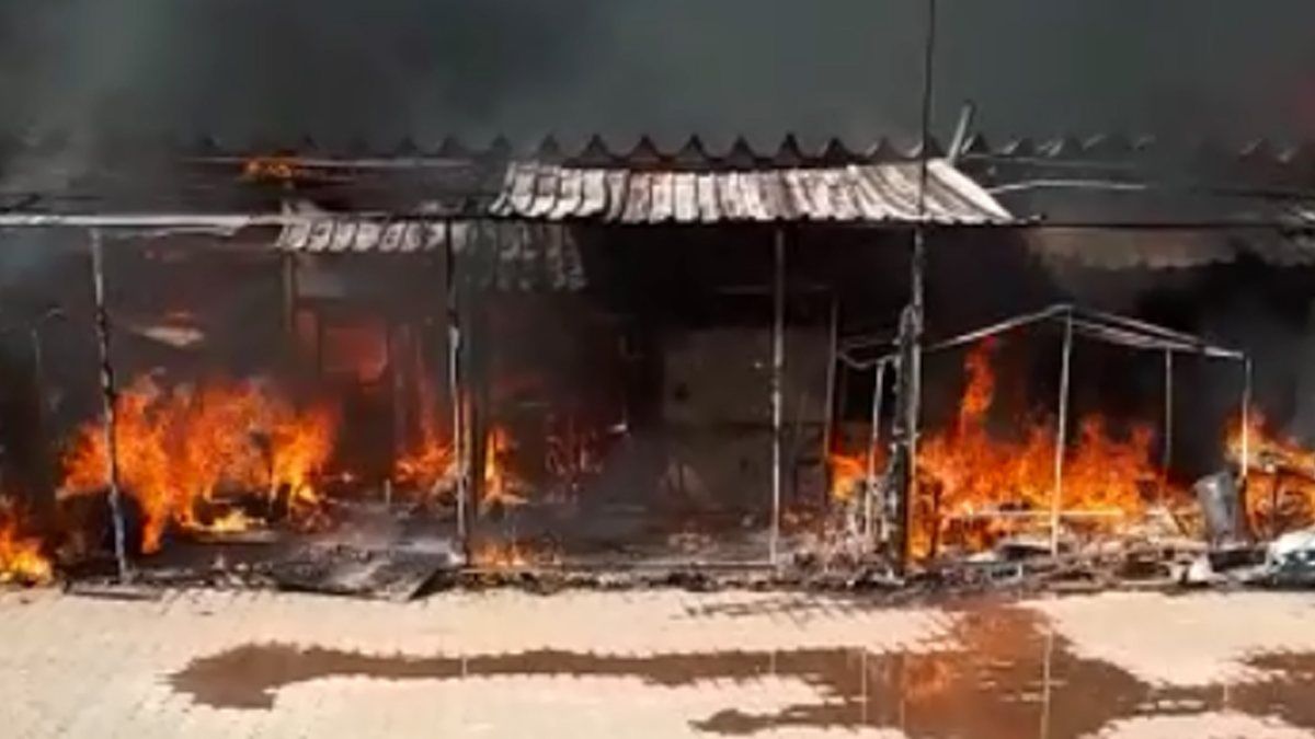 Henüz bilinmeyen nedenle çıkan yangın, bitişikteki diğer barakalara da sıçradı.