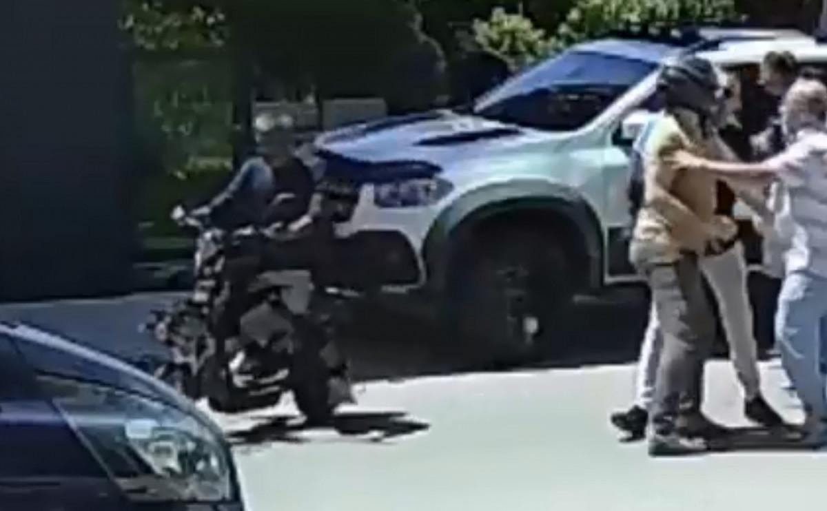 Esnaf, iki kişiyi güçlükle ayırırken, motosikletinin çalındığını anlayan sürücü bu kez hırsızlık şoku yaşadı.