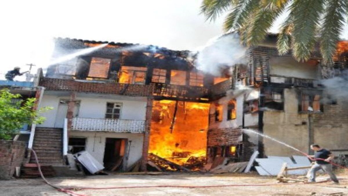 Antalya'nın Kaleiçi bölgesindeki tarihi ahşap binada yangın çıktı.
