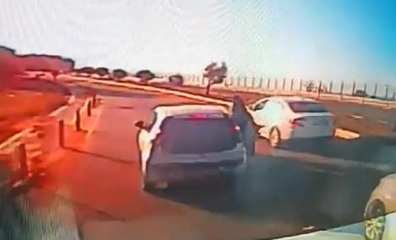 Kısa süre sonra Kav, kullandığı motosikletle tartıştığı otomobile yaklaştı. Bu sırada Kav'ın direksiyon hakimiyetini kaybetmesiyle motosiklet üzerindeki ikili refüje savruldu.