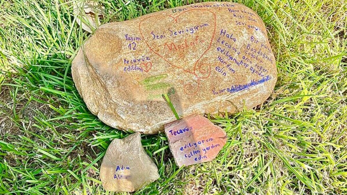 Antalya polisi, Kepez ilçesine bağlı Osman Yüksek Serdengeçti Caddesi'ndeki yeşil alanda bulunan, üzerinde çeşitli yazıların yer aldığı taşın sosyal medyada paylaşılması üzerine çalışma başlatmıştı.
