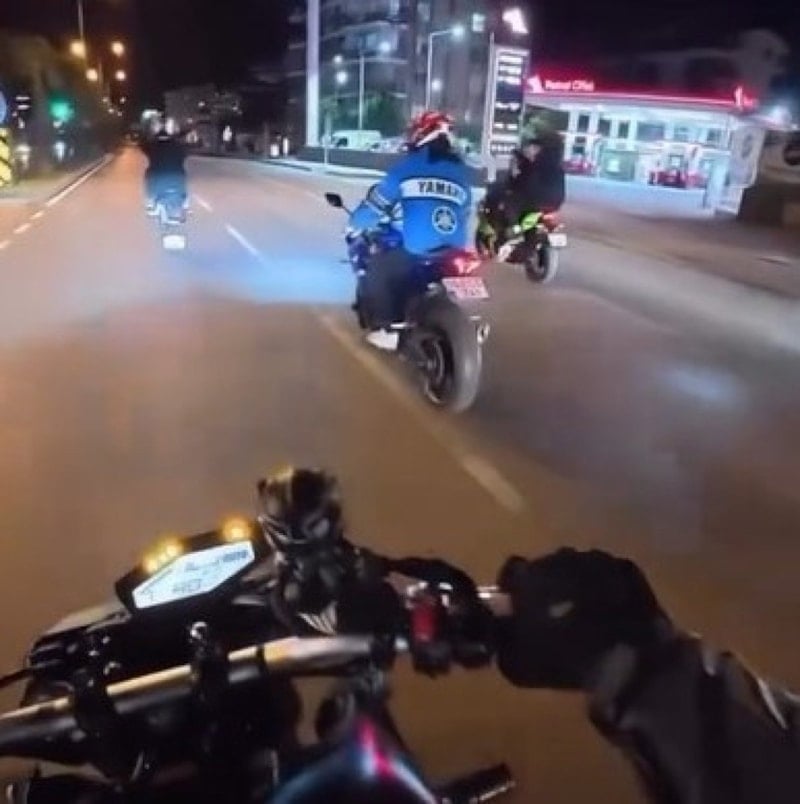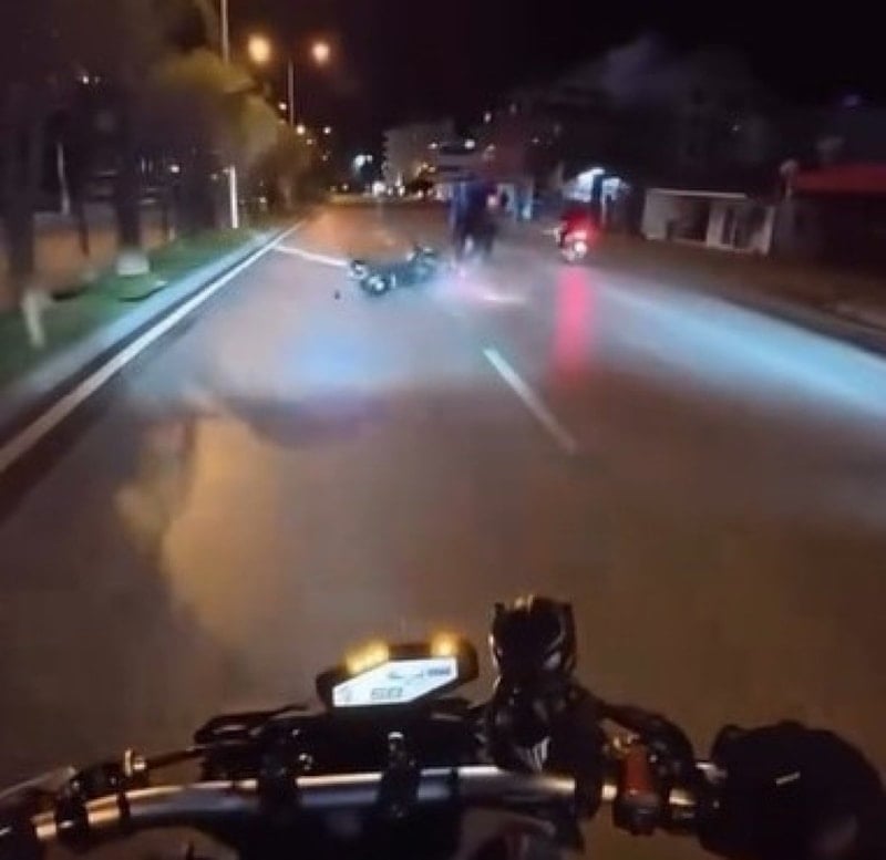 Yaşanan kaza, arkadan gelen motosiklet sürücüsünün kask kamerası tarafından kaydedildi. Görüntülerde motosikletlinin tek teker üzerinde ilerlediği, ardından dengesini kaybederek yere düştüğü ve ikinci motosikletlinin de kazaya karıştığı anlar net şekilde görülüyor.