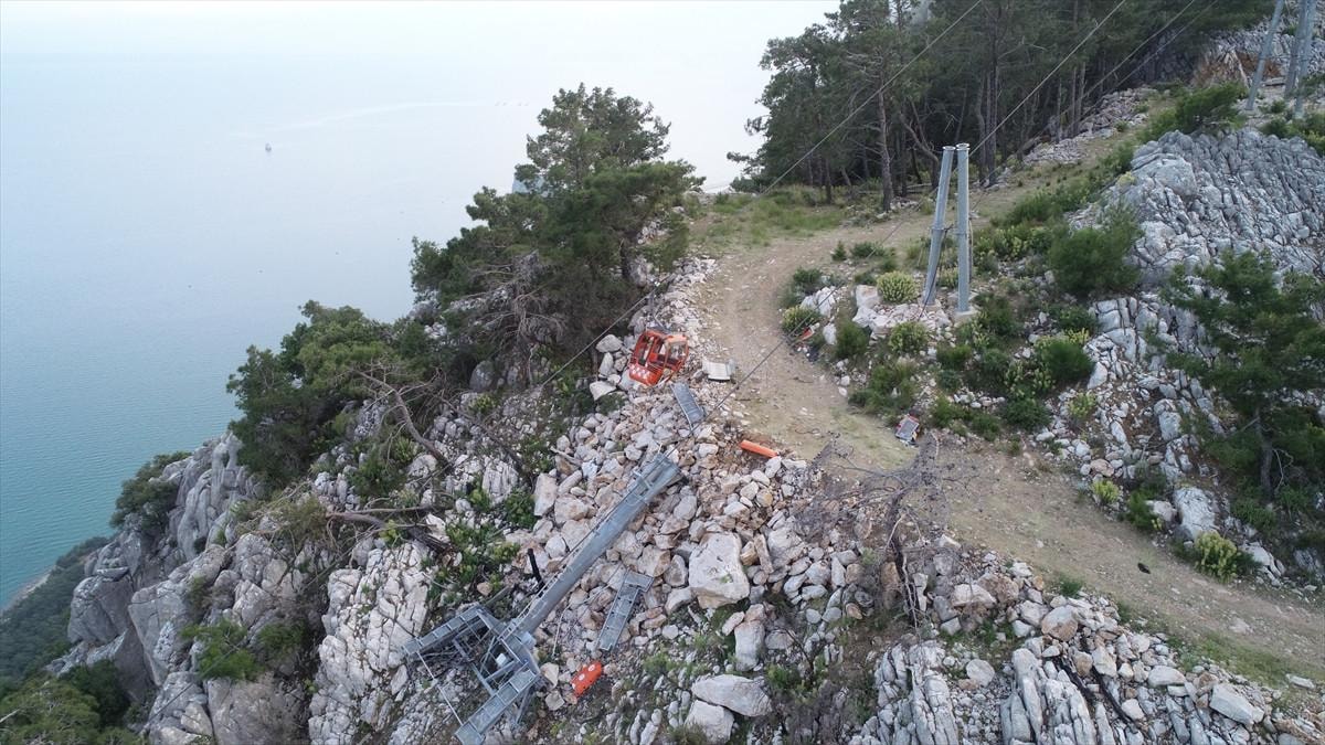 Teleferik kazasının yaşandığı alandaki enkaz, günler sonra havadan görüntülendi.
