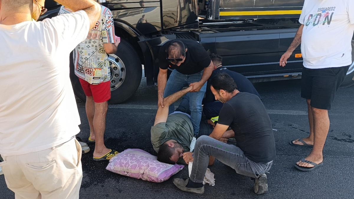 Olayı gören diğer araç sürücüleri ve çevredeki vatandaşlar tarafından kendisinden geçmiş vaziyette araçtan indirilen tır sürücüsü yol ortasına yatırıldı.