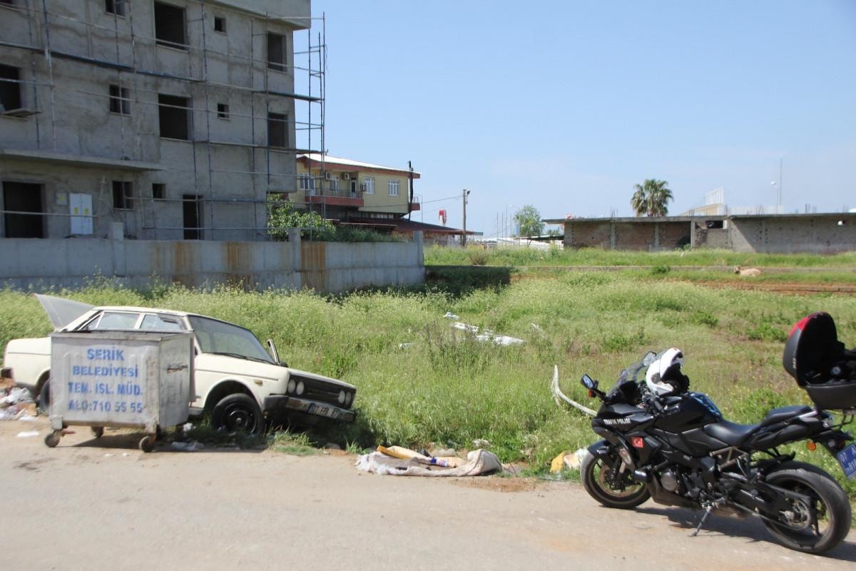 Serik ilçesi Kürüş Mahallesi Sanayi mevkiinde Fiat Tofaş marka otomobilin çöp konteynerinin yanına terk edildiğini görenlerin haber vermesi üzerine polis ekipleri, olay yerinde 07 FPB 87 plakalı otomobili çöp konteyneri yanında atıl vaziyette buldu ve motor parçalarının söküldüğünü belirledi.
