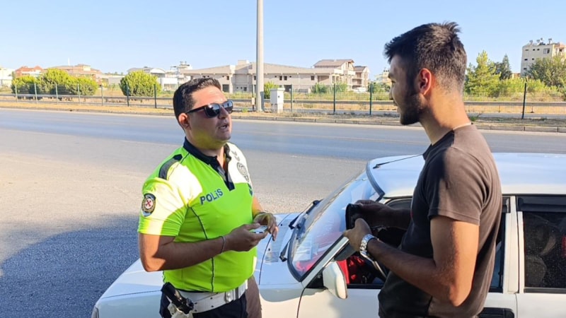 Antalya'da yüksek hız yapan genç sürücü ve trafik polisi arasında samimi anlar yaşandı.