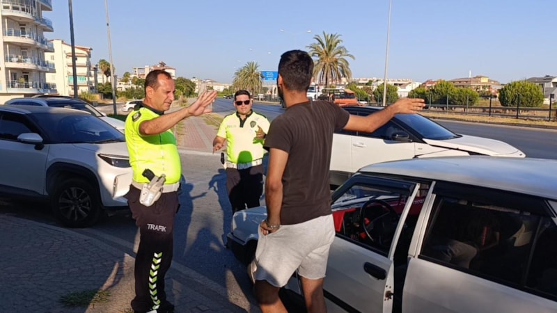 Manavgat ilçesi Hasan Ali Yücel Caddesi ile çevreyolu kesişiminde meydana gelen maddi hasarlı kazaya müdahale eden trafik polisi ekipleri, kaza bölgesine yüksek hızla yaklaşan bir otomobil fark etti.