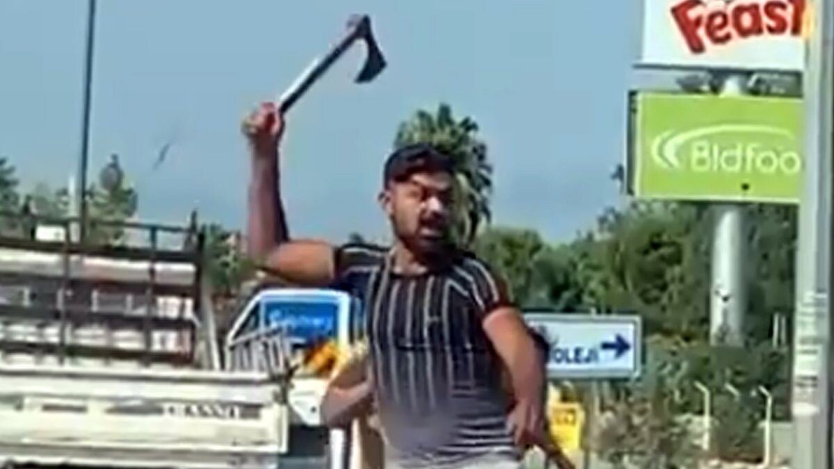 Kamyon sürücüsü eline balta, otomobil sürücüsü ise döner bıçağı aldı. Bu sırada kucağında bebek olan kadın, kamyonet sürücüsünü sakinleştirmeye çalıştı. Kadın, genci sakinleştirirken elini yüzüne götürüp feryat ettikten sonra otomobil sürücüsüne dönerek bir şeyler söylemeye başladı. Bir süre sonra iki sürücü, araçlarına binerek yollarına devam etti.
