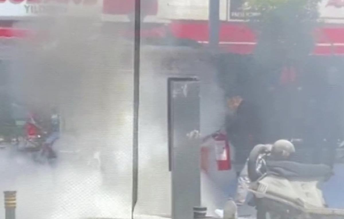 Tezgahtan dumanların çıktığını gören ve sahibinin bulunmadığı bir sırada çıkan yangına çevredeki vatandaşlar, yangın tüpü ile müdahale etti.