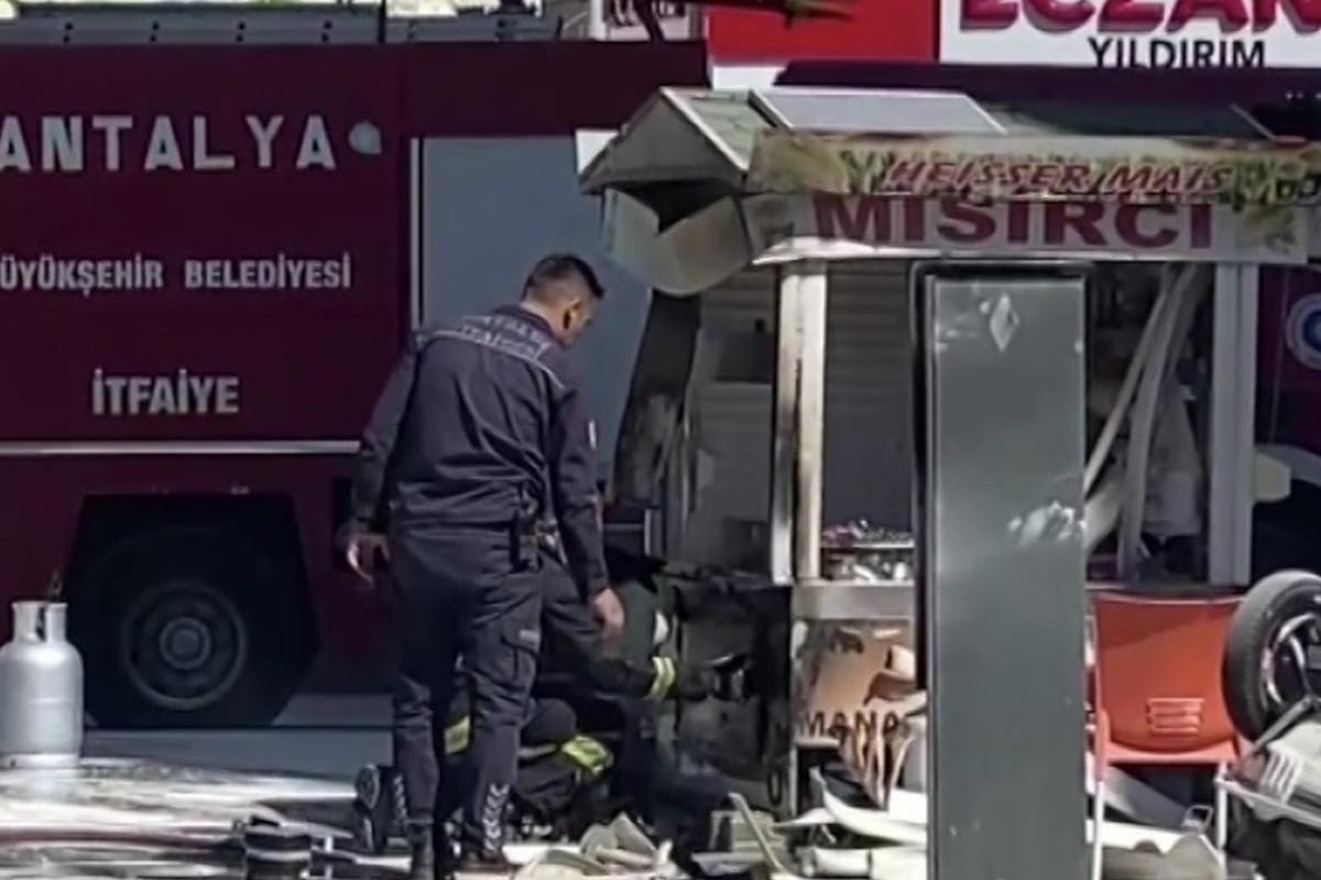 Antalya’nın Manavgat ilçesinde kaldırım üzerinde bulunan Süleyman Şehirli isimli vatandaşa ait seyyar tüplü mısır arabasında, bilinmeyen bir nedenle yangın çıktı.