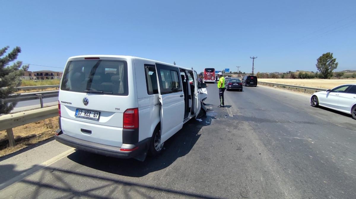 Antalya'nın Manavgat ilçesinde seyir halindeki Burak A.'nın kullandığı tur minibüsü, aynı istikamette gitmekte olan Halil C.'nin kullandığı tur otobüsüne arkadan çarptı.
