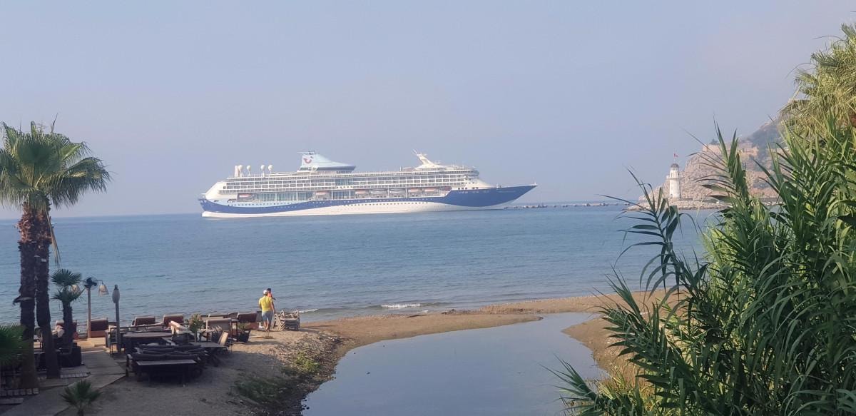 Alanya Limanı'na yanaşan gemide, çoğu İngiliz bin 810 yolcu ve 743 personel bulunuyor.