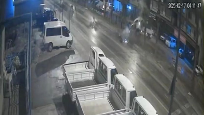 Yüreklerin ağza geldiği kaza anları ise çevredeki bir iş yerinin güvenlik kamerası tarafından anbean kaydedildi.