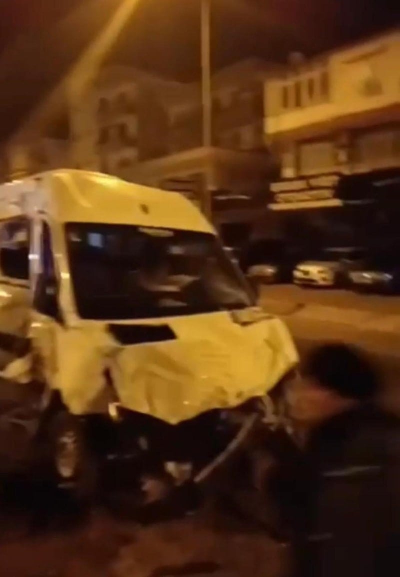 Görüntülerde, minibüsün kontrolden çıkıp refüje çarpma anları yer aldı.