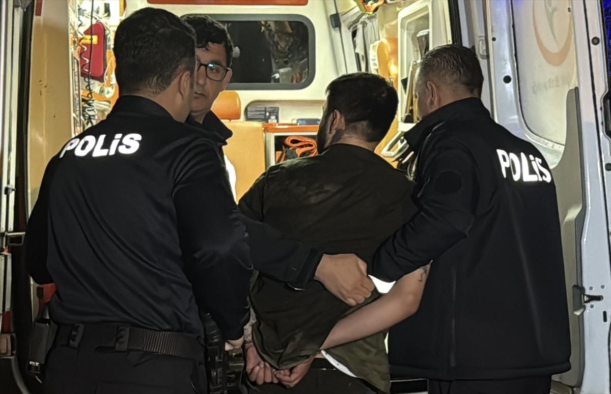 Şüpheli, ambulansa binmemek için polis ekibine zorluk çıkardı.