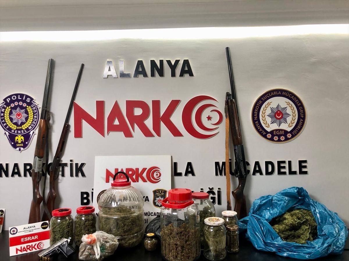 Yapılan aramalarda, 10 kilo 711 gram skank, 7 kilo 100 gram esrar, 4 kilo 679 gram eroin, 3 kilo 186 gram metamfetamin, 2 kilo 794 gram kokain, 3 bin 322 sentetik hap, 142 ekstazi, 1943 A4 maddesi, 13 kök kenevir bitkisi, 37 hassas terazi, 22 ruhsatsız silah ve bunlara ait 294 fişek ile bir miktar para ele geçirildi.