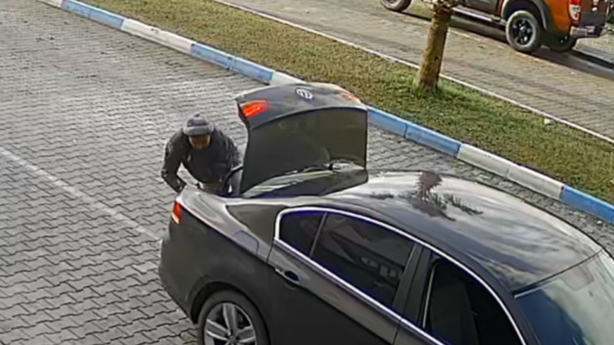 Yapı marketten ayakkabı alıp çıkan kişi ve işçisi tekrar otomobile yöneldi. İşçi yine bagaja bindi. Bulvardaki bir kişi ise işçinin girdiği bagajın kapağını kapatmasına yardım etti.