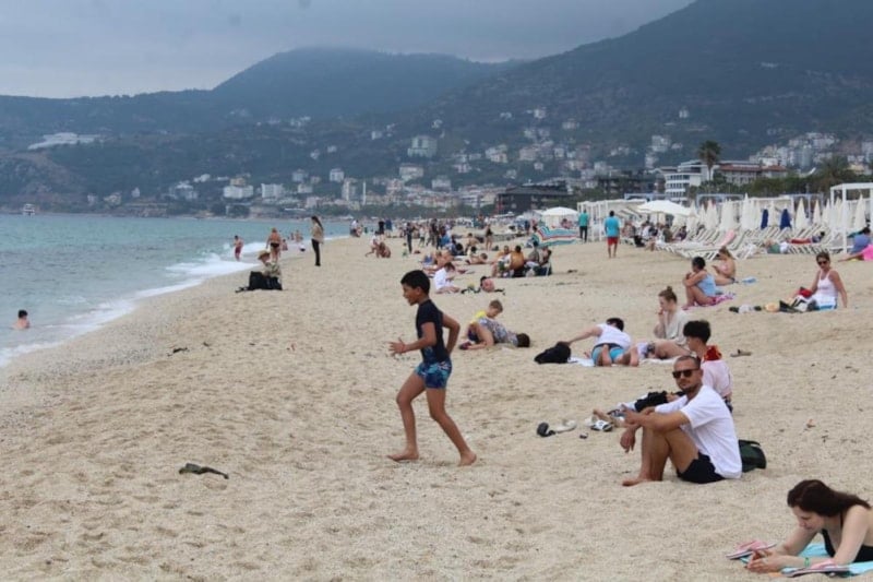 Türkiye’nin önemli turizm ilçelerinden olan Antalya'nın Alanya ilçesinde Ramazan Bayramı’nın 3’üncü gününde yerli ve yabancı Damlataş Plajı’na akın etti.