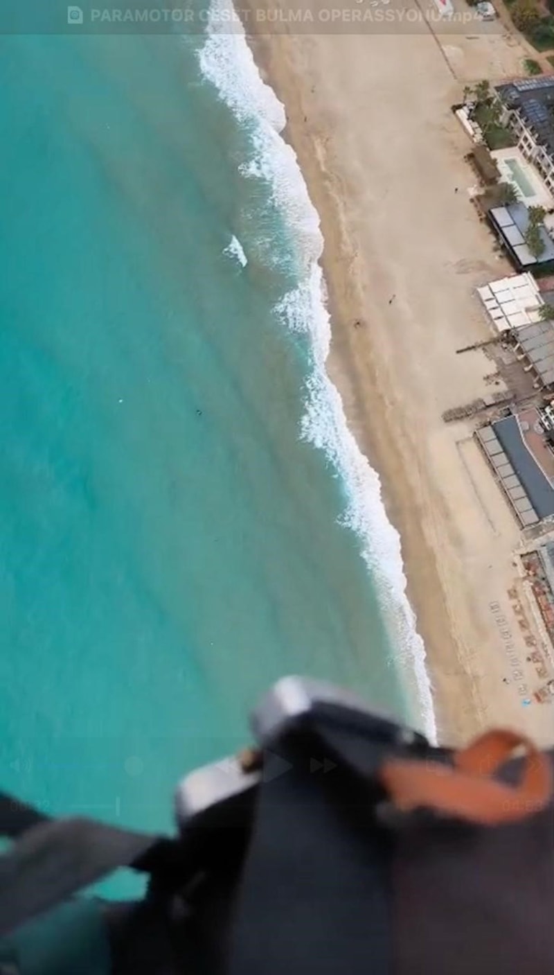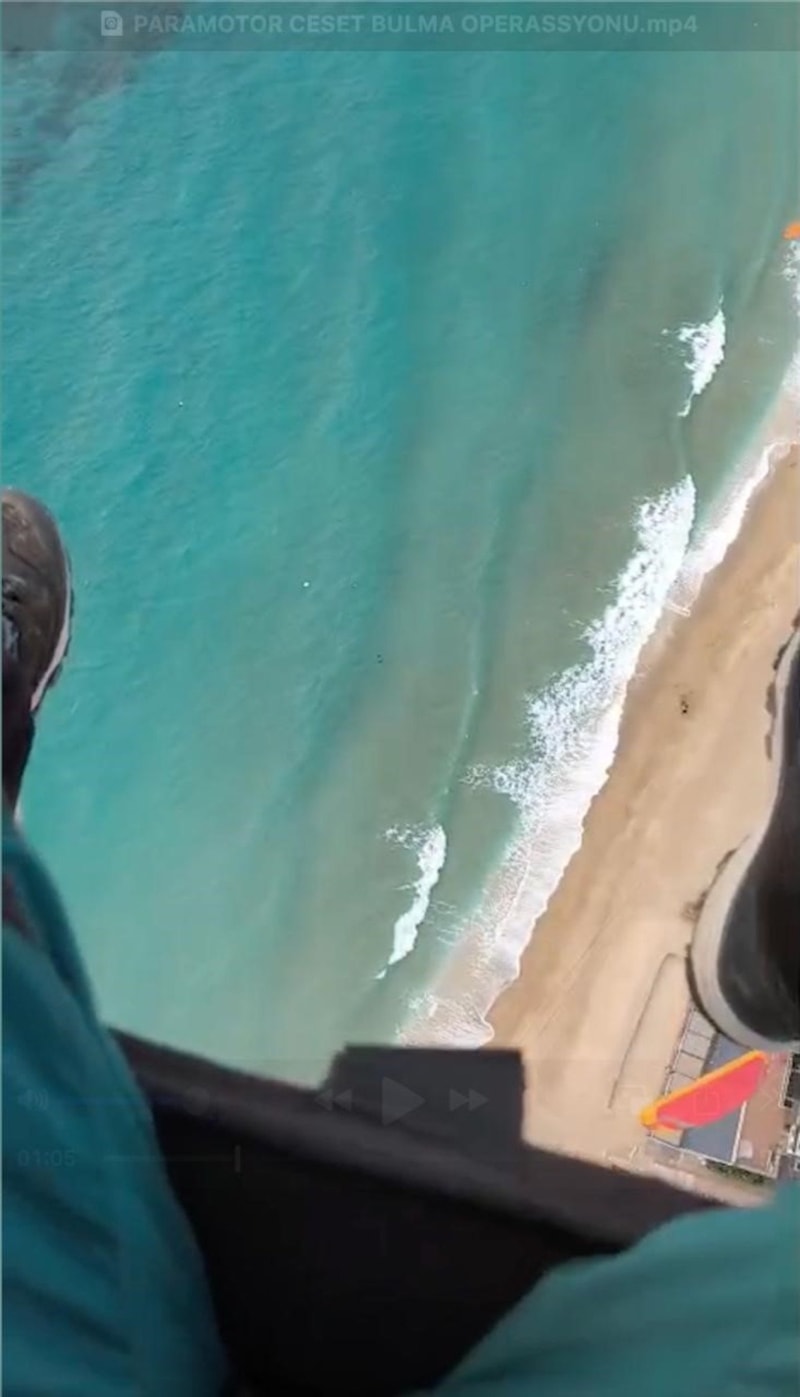 Alanya'da 2,5 ay önce gerçekleştirilen eğitim sırasında havalanan bir motorlu yamaç paraşütü pilotunun, bir kadın ait olduğu tespit edilen cansız bedeni gördüğü anlar, kameraya yansıdı.