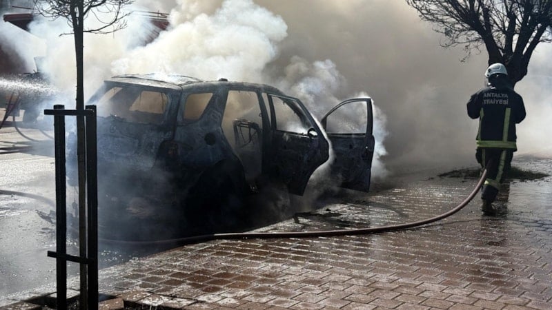 Konyaaltı ilçesi Uncalı Mahallesi Çamlık Caddesi'nde saat 11.00 sıralarında, hareket halindeki Salih Türk yönetimindeki otomobilin motor kısmından duman yükseldi.