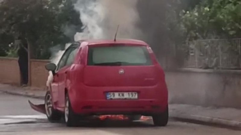 Bu sırada aracın motor kısmını alevler sararken Soner A.'nın yardımına komşuları yetişti.