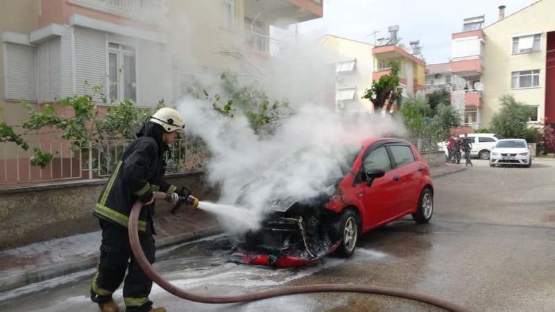 Verilen adrese gelen itfaiye ekiplerinin müdahalesi ile araçtaki yangın kısa sürede söndürüldü.