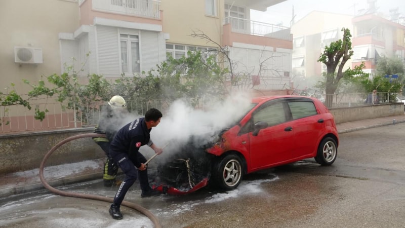 Muratpaşa’da park edilmek istenirken motor kısmından alev alan otomobile mahalleli hortumla müdahale etti. Yangını kayda alan çocukların yorumları ise izleyenleri güldürdü.