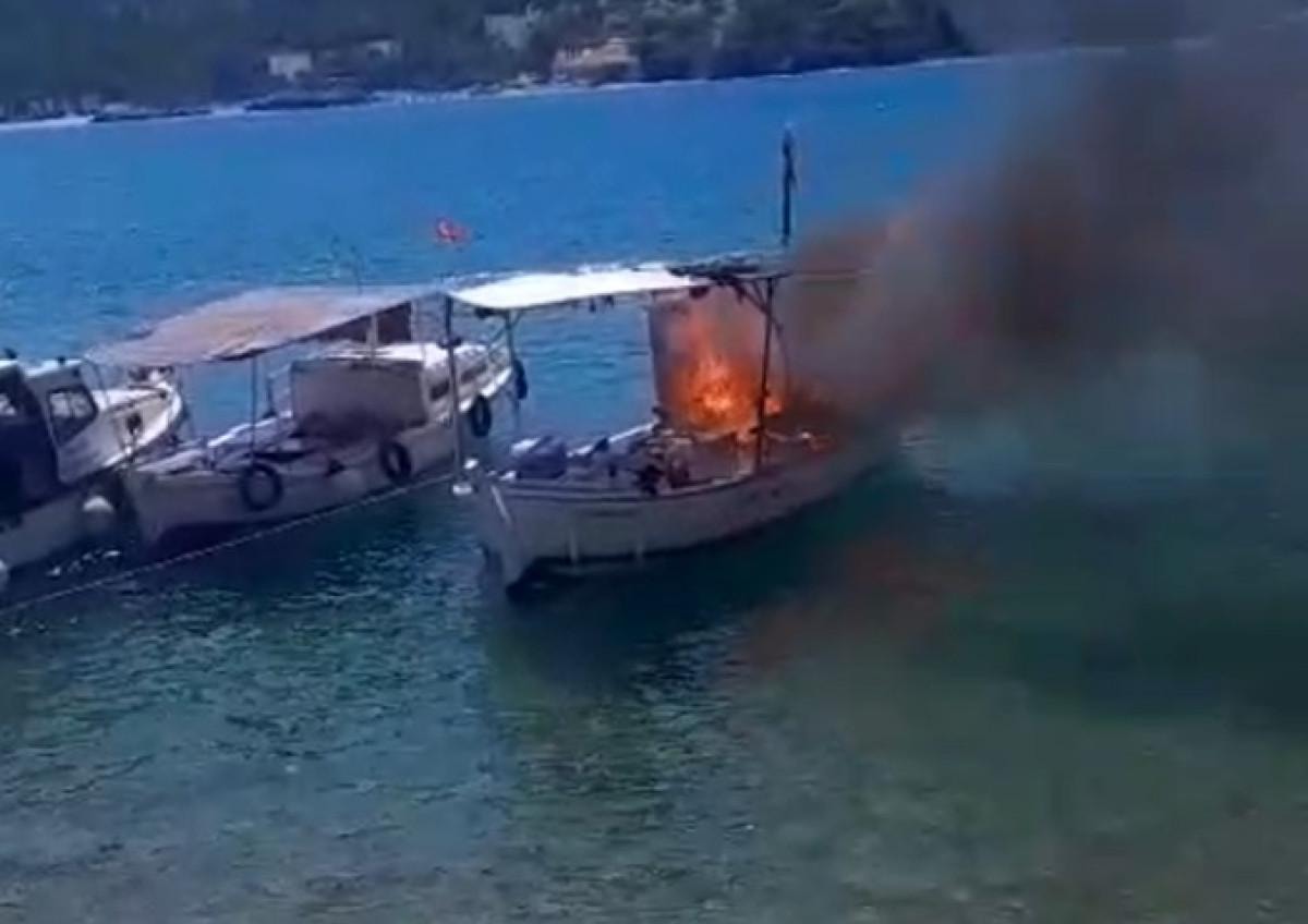 Antalya’nın Kemer ilçesinde, Ayışığı Koyu’na demirli bir balıkçı teknesinde sabah saatlerinde yangın çıktı. Saat 11.30 civarında kıyıya yakın noktada yükselen alevleri fark eden çevredeki esnaf, ilk müdahaleyi hortumla su sıkarak yaptı.