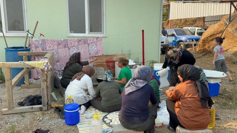 Yangın bölgesinde kadınlar, yağda kızarmış pişi hazırlayarak hem itfaiye ekiplerine hem de yangına müdahalede bulunan vatandaşlara gıda takviyesi sağlıyor.