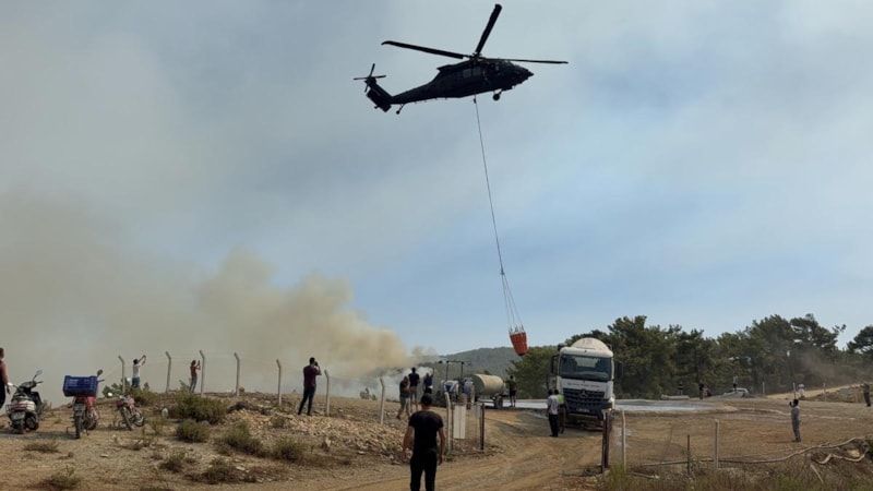 Şıhlar ve Gözüküçüklü Mahallelerinde karadan ve havadan söndürme çalışmaları devam ederken, bölge halkı da ekiplere destek veriyor.
