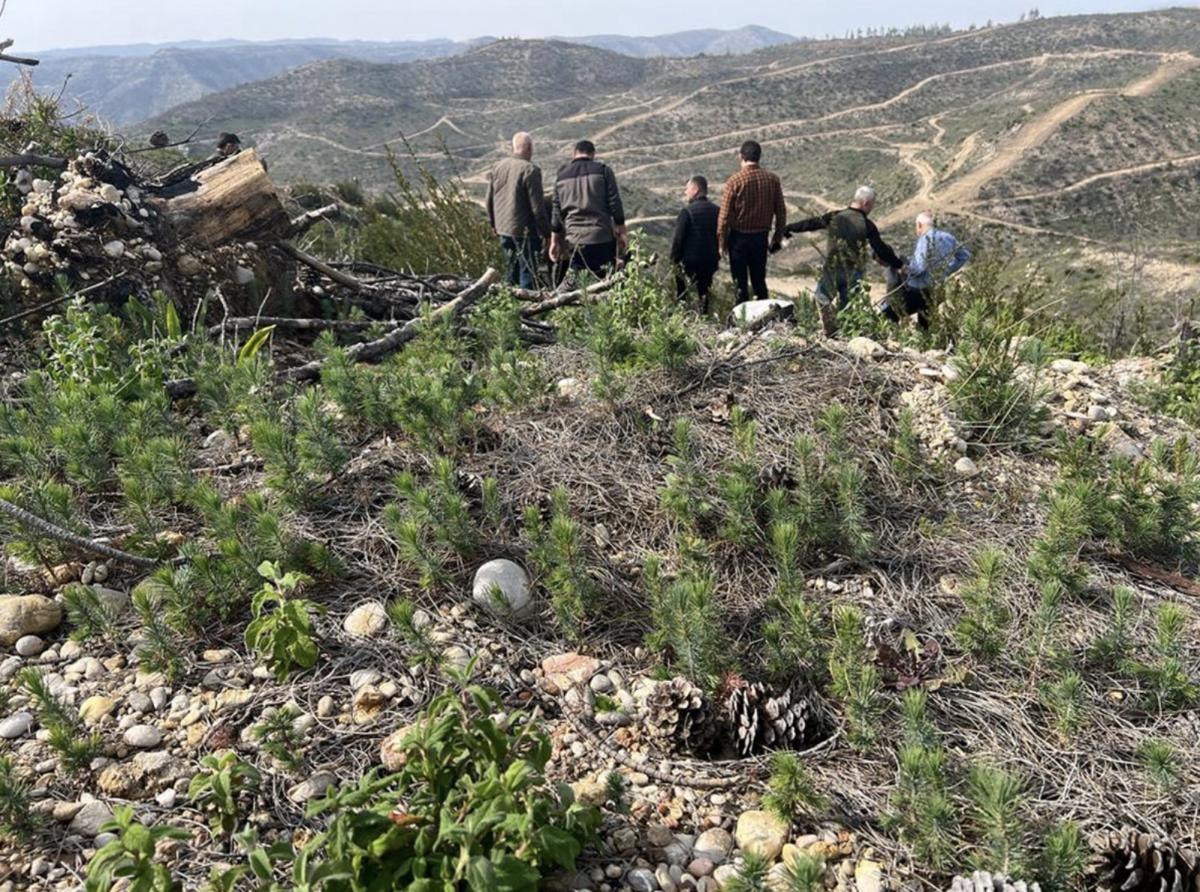 Bu kapsamda yangında zarar gören orman arazilerinde yapılan çalışmaların ardından çam fidanları boy vermeye başladı.