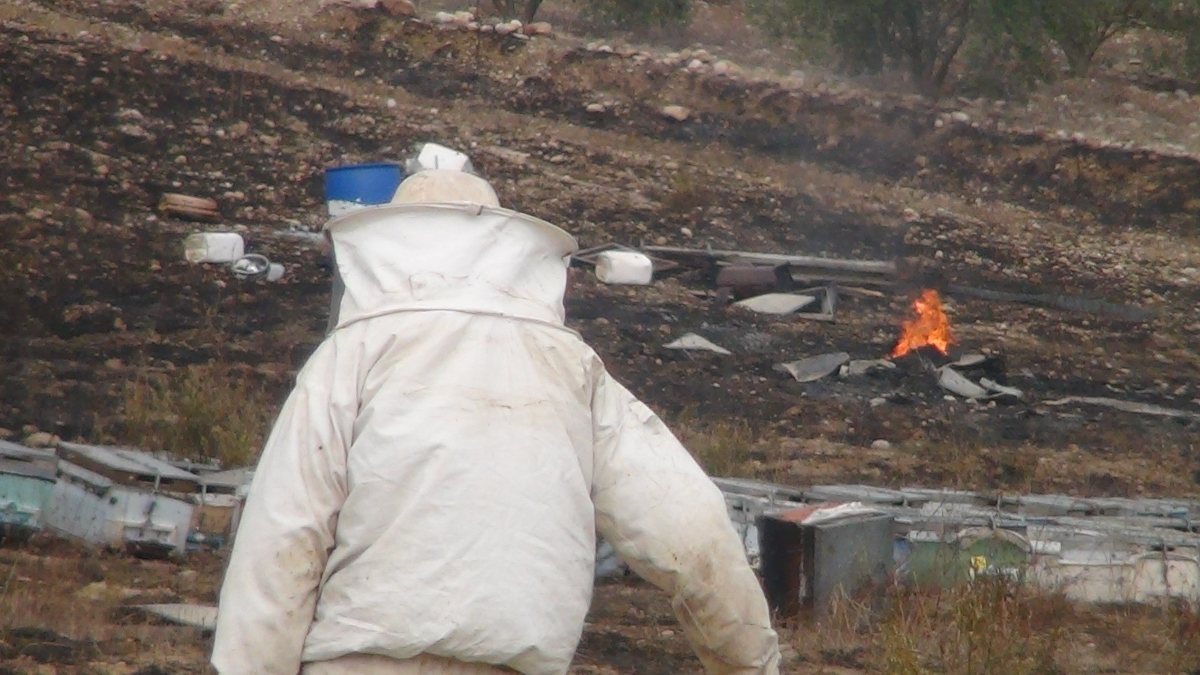 Antalya'da, yangının ortasında kalan arı kovanları küle döndü VİDEO