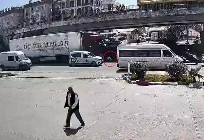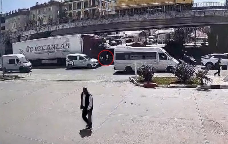 Görüntüde; tırın hareket halindeyken yol kenarında bulunan Durdu Aldemir'e çarptığı, kadının aracın altında kaldığı anlar yer aldı.