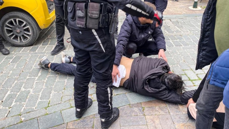 Ardından tansiyon birden yükseldi ve olay bir süre sonra kavgaya dönüştü.