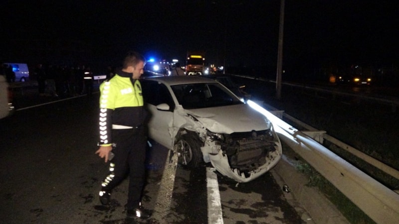 Bariyerlere çarpan otomobile arkadan gelen Ahmet D.'nin kullandığı 81 ER 008 ve Ömer R.O.'nun kullandığı 07 LM 889 plakalı Volkswagen marka araçlar çarptı.