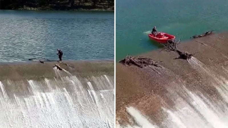 Görüntülerde, dolusavakta yürüyerek takılan dalları eliyle temizlediği görülen Yurtseven’in rahat tavırları dikkat çekti.