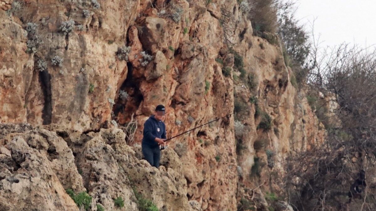 Antalya'nın Konyaaltı ilçesinde balık tutmak için 30 metre yükseklikteki falezlerin kıyısına kadar gelen amatör balıkçı, yürekleri ağza getirdi.