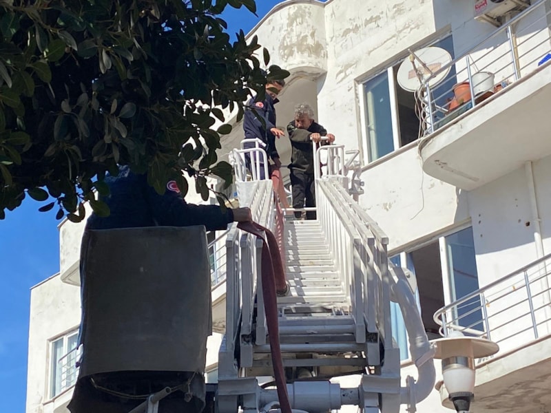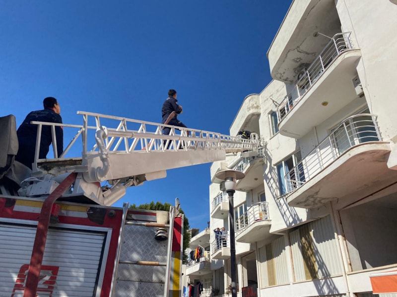 Serik ilçesindeki binanın 2'nci katında çıkan yangın sırasında evde uyuyan iki kız kardeş kendilerini dışarı attı. Neye uğradıklarını şaşıran kardeşler ağlamaya başladı.