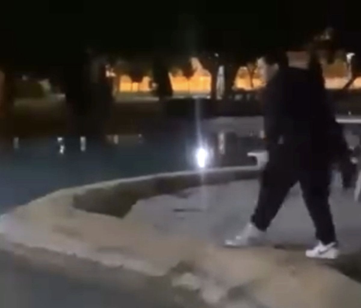 Görüntülerde, havuza atılıp dışarı çıkan kedinin aynı kişi tarafından defalarca havuza fırlatıldığı anlar yer aldı.