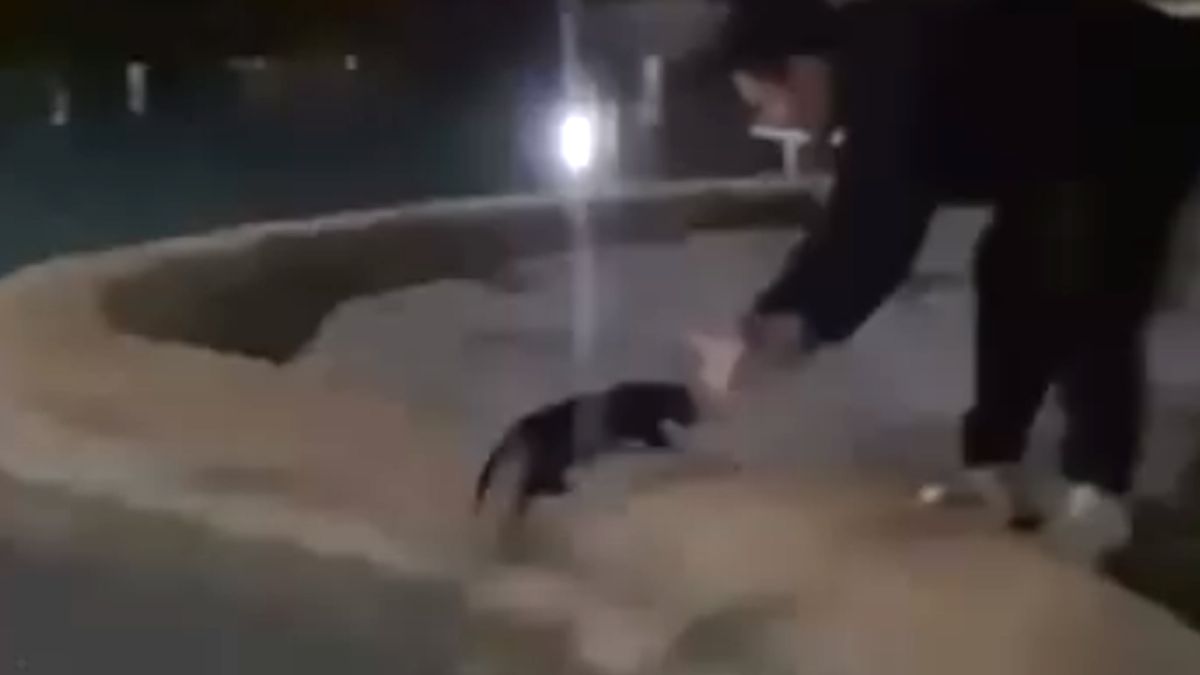 Kimliği belirsiz kişiler, bir sokak kedisini defalarca süs havuzuna fırlattı.