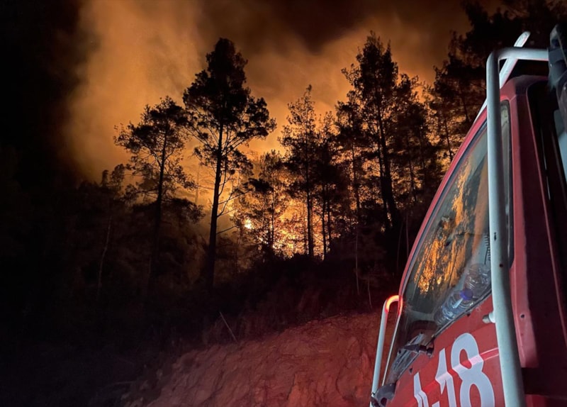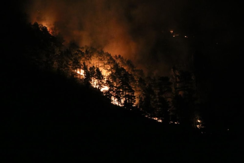Çalışmalar devam ederken kısa süreli kendisini gösteren yağmurun yangının kısmen sönmesine neden oldu.