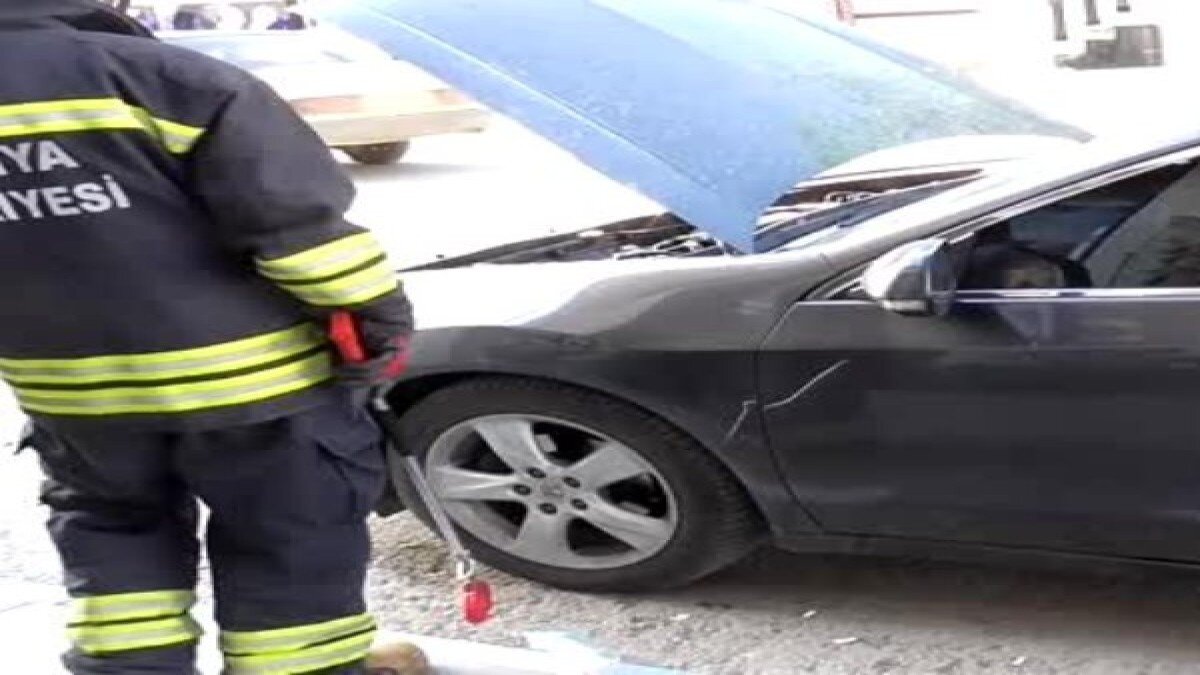 Konya'nın Beyşehir ilçesi Atatürk Caddesi'nde yol kenarında park halinde olan bir otomobilin içerisine yılan girdiği ihbarı üzerine itfaiye ekipleri harekete geçti.