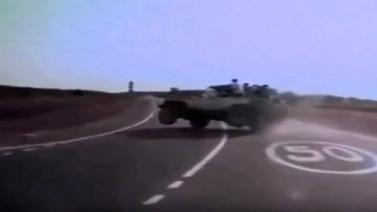 Krasnodar’ın deniz turizmi en yoğun olan kasabalarından Anapa’da arazi aracının arkasına binen turistler, geziye çıktı.