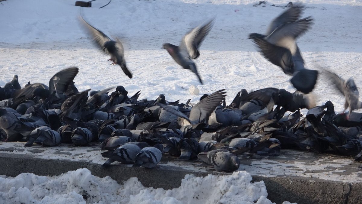 Duyarlı vatandaşlar, düzenli olarak aç kalan güvercinleri aldıkları buğdayları bırakarak besledi.