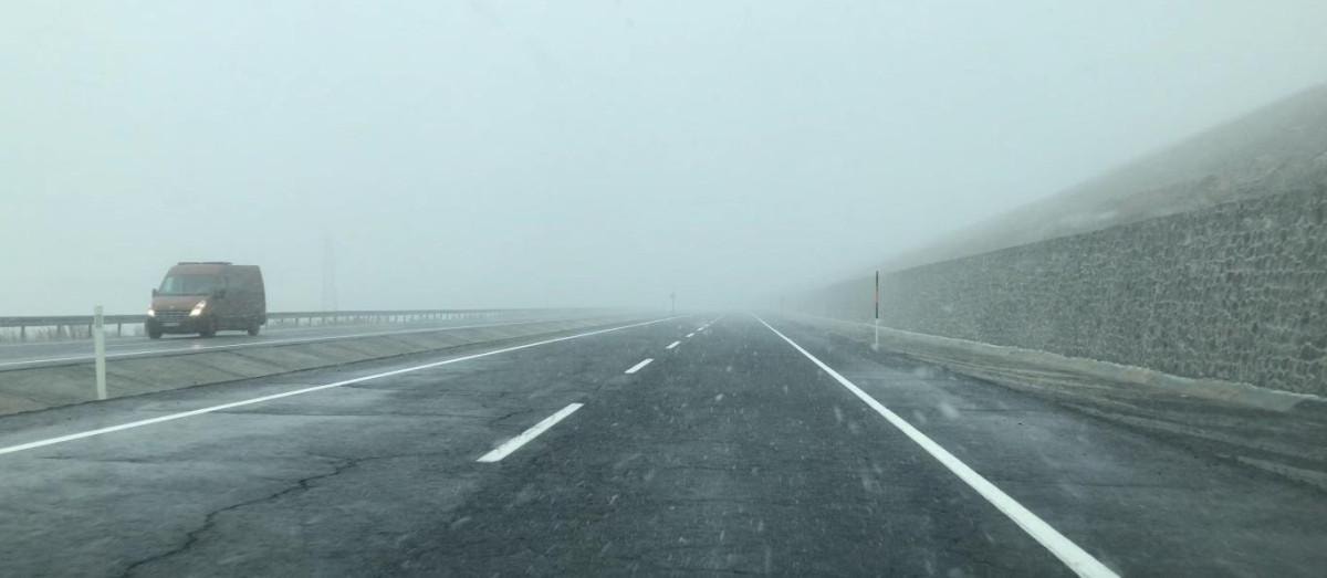 Ardahan'da öğle saatlerinde sis ve kar yağışı etkili oldu.