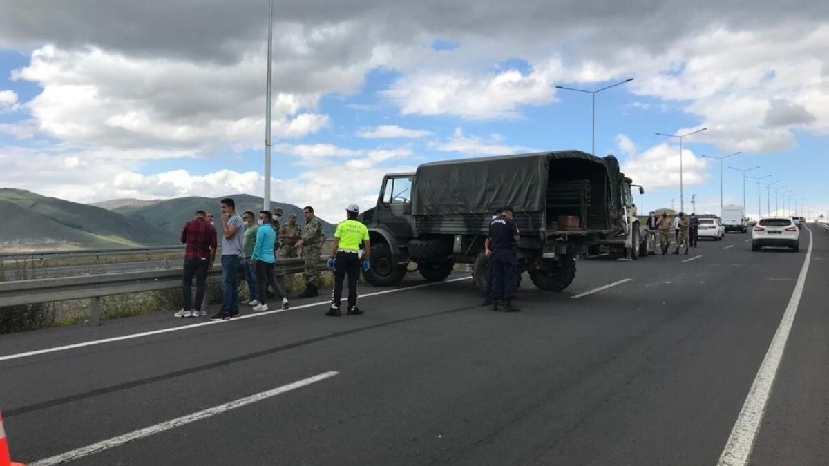 Ardahan-Kars kara yolunun 1. kilometresinde seyir halinde olan askeri araç, direksiyon hakimiyetinin kaybedilmesi üzerine bariyerlere çarptı.